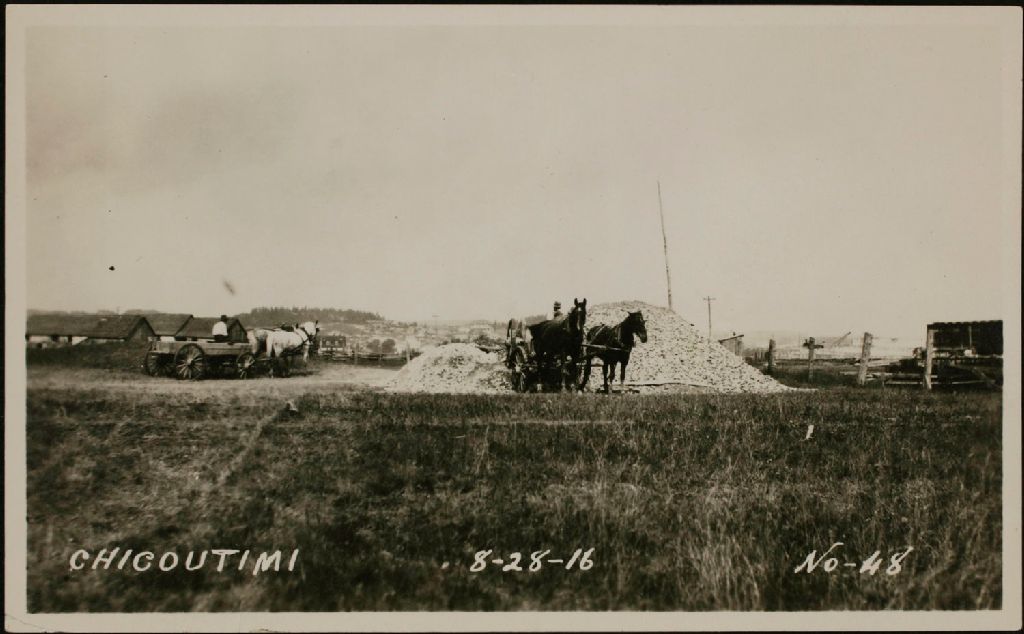 Hauling stone for acid room foundations = Transport des roches pour la salle des acides
