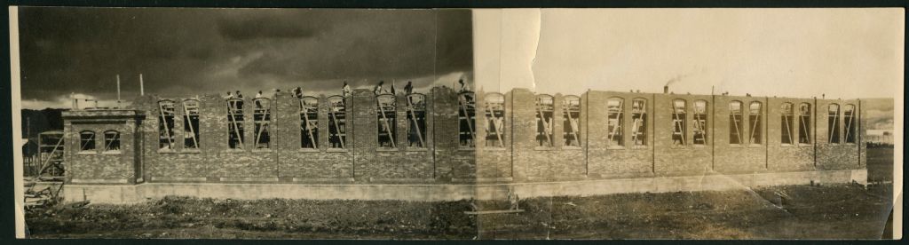 Machine room from « B » = Salle des machines vue du point B, 2 septembre 1916, Archives nationales à Saguenay, Fonds Ha! Ha! Bay Sulphite Company Limited, (02C,P139,P55-56), Photographe non identifié.