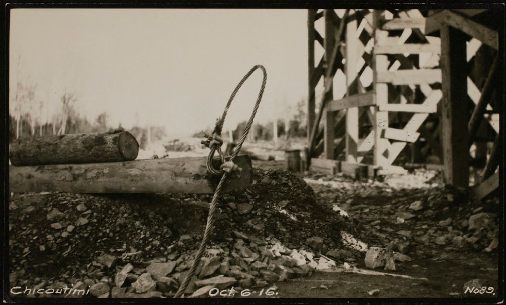Loop at end of guy cable, quarry. Showing not broken now bad clips slipped = Boucle au bout du hauban ne montrant aucun dommage