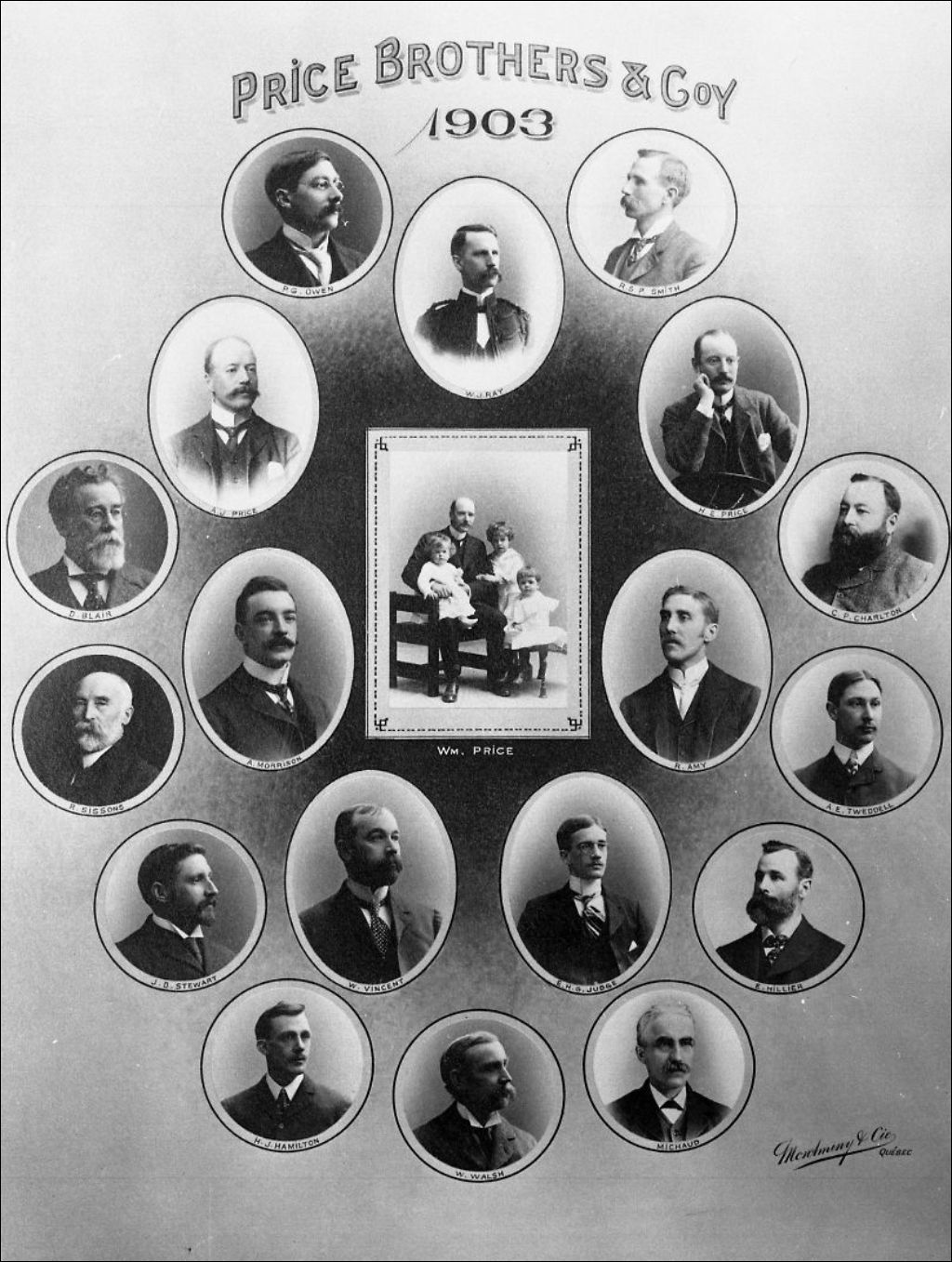 Mosaïque Price Brothers & Goy, 1903, Archives nationales à Saguenay, Fonds de la Compagnie Price Brothers, (02C,P666,S12,SS1,P7), Photographe non identifié.