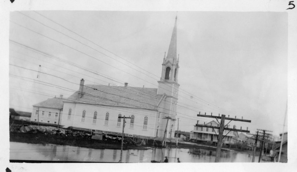 Inondation du Lac-Saint-Jean à Saint-Méthode en 1928, 1928, Archives nationales à Saguenay, Collection Centre des archives nationales du Québec à Chicoutimi, (02C,P1000,D310,P5), Photographe non identifié.