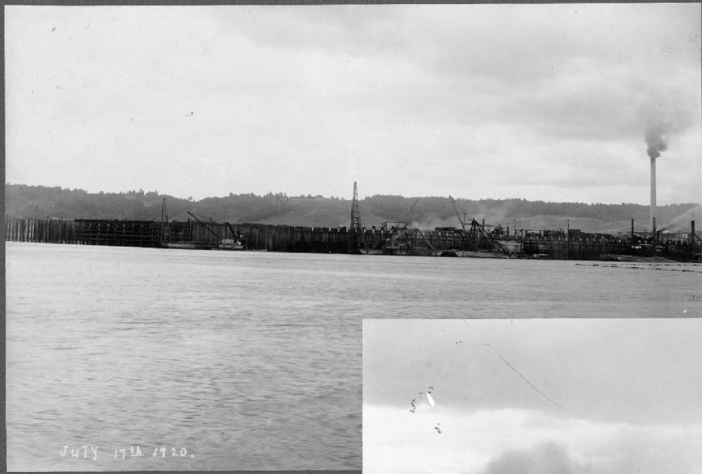 Le quai de Port-Alfred et la cheminée de l'usine Ha! Ha! Bay sulphite company, vus de sur le Saguenay - Ville de La Baie