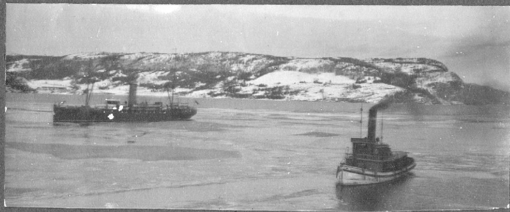 Bateaux transportant le papier sur le Saguenay pendant l'hiver - Ville de La Baie