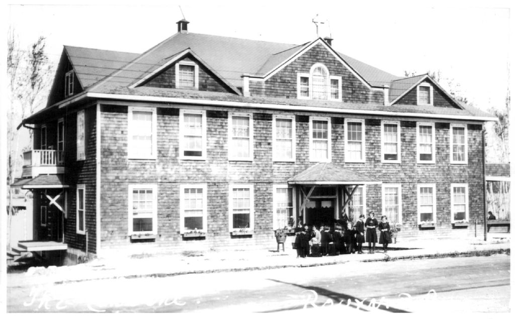 Vue du couvent des Saints-Anges sur la rue Perreault à Rouyn, [entre 1929 et 1935], Archives nationales à Rouyn-Noranda, Fonds Fonderie Horne, (08Y,P123,S1,P154), Vavasour & Dick.