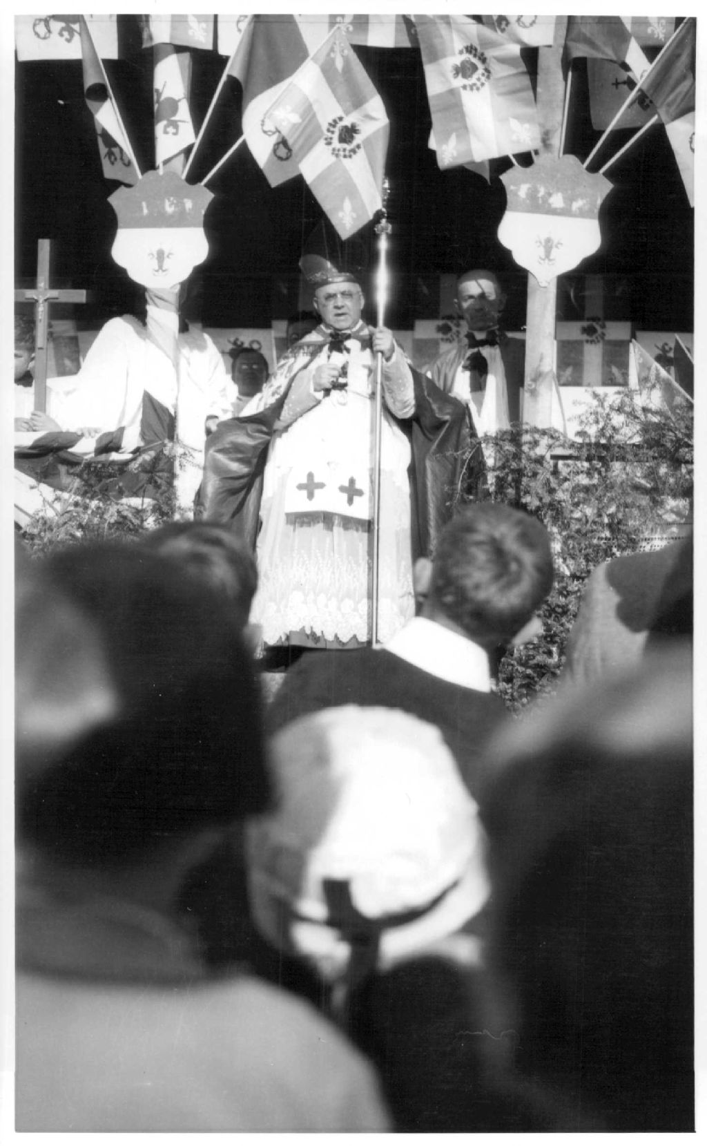 Bénédiction de la pierre angulaire de l'Église St-Michel à Rouyn, 4 septembre 1927, Archives nationales à Rouyn-Noranda, Fonds Fonderie Horne, (08Y,P123,S1,P165), Vavasour & Dick.