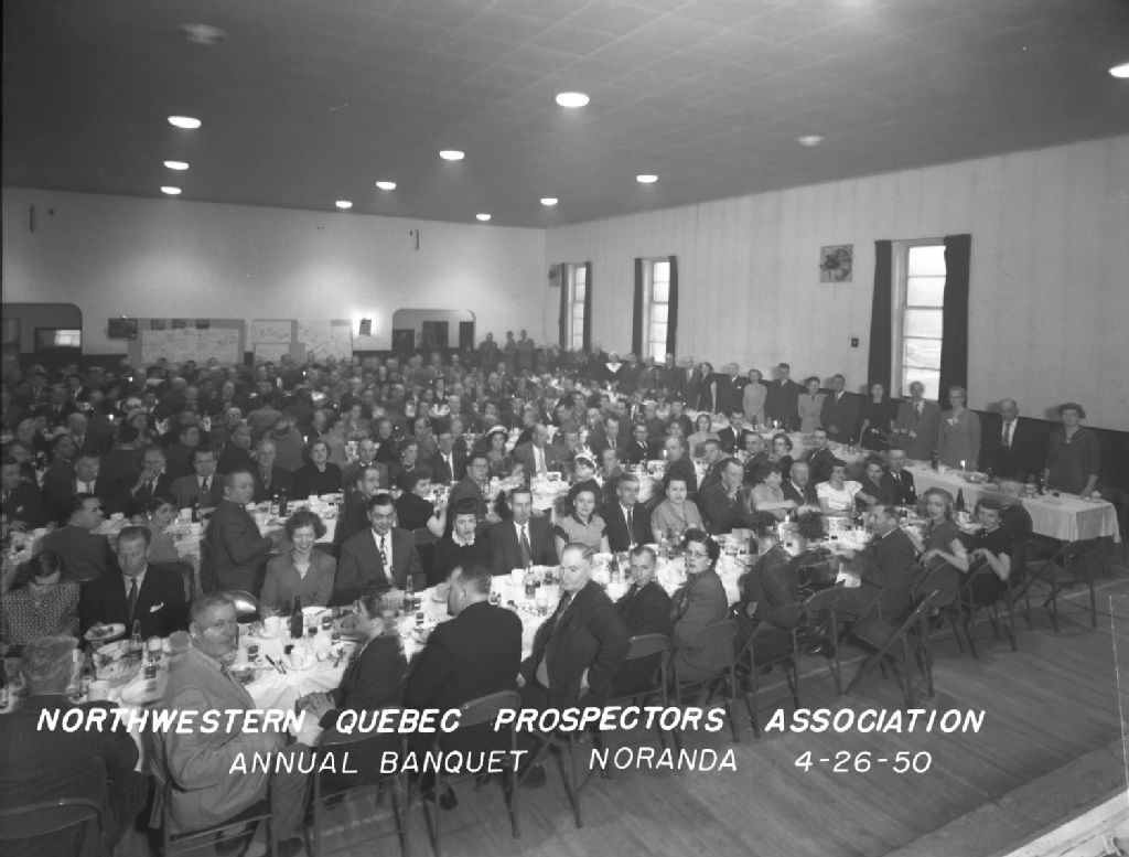 Ce dossier comprend une photographie du banquet annuel de l'Association des prospecteurs du Nord-Ouest du Québec qui a eu lieu le 26 avril 1950 à Noranda