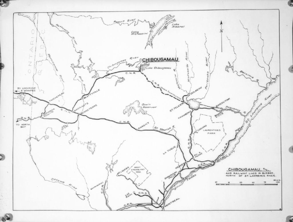 Photographie d'une carte illustrant la situation géographique de Chibougamau