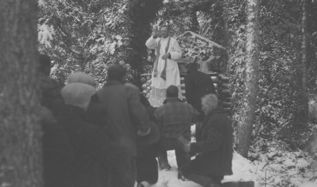 Célébration de la messe en plein air durant l'hiver à Laferté