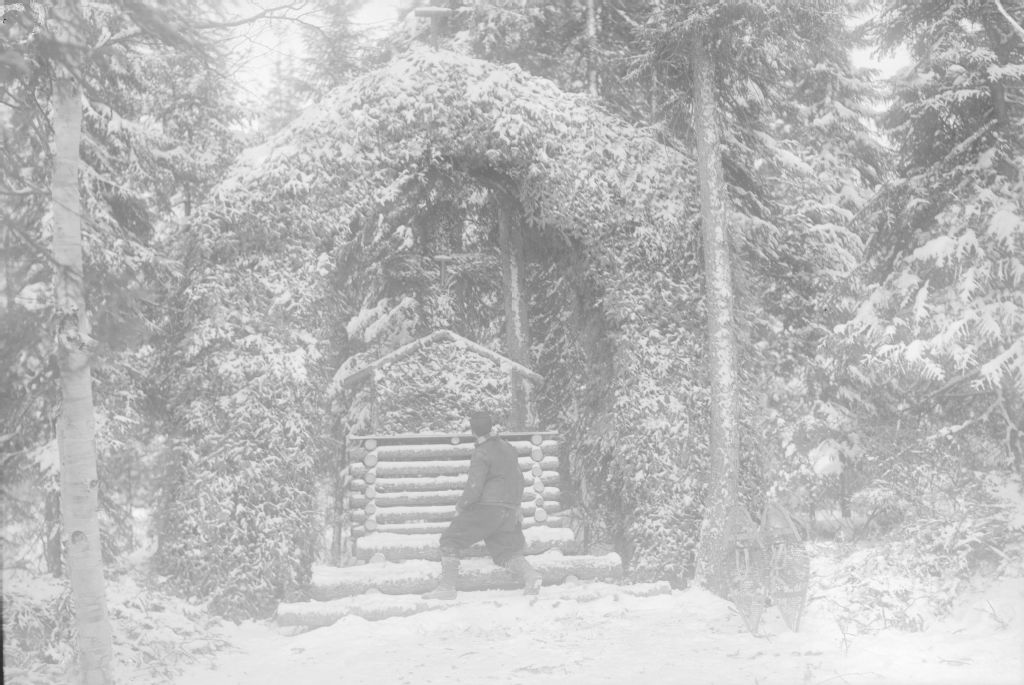 Un homme devant un autel en plein air durant l'hiver à Laferté