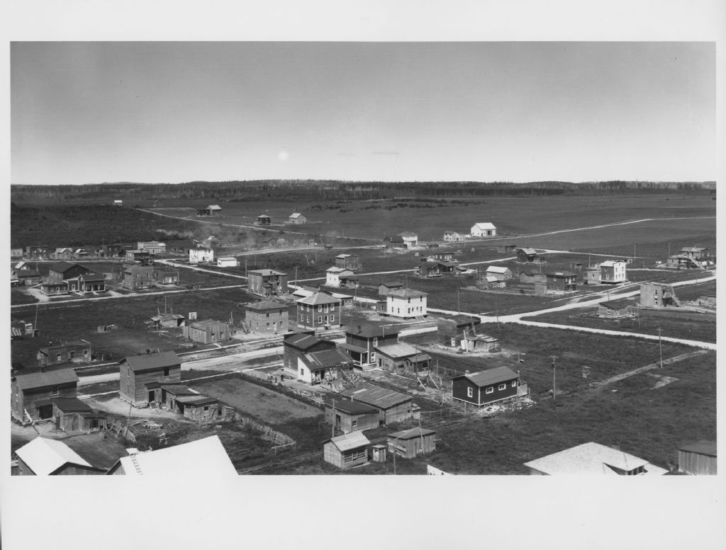 Vue générale de la ville d'Amos, Abitibi., 1927-1928, Archives nationales à Rouyn-Noranda, Fonds Canadien National, (08Y,P213,P96), Canadien National.