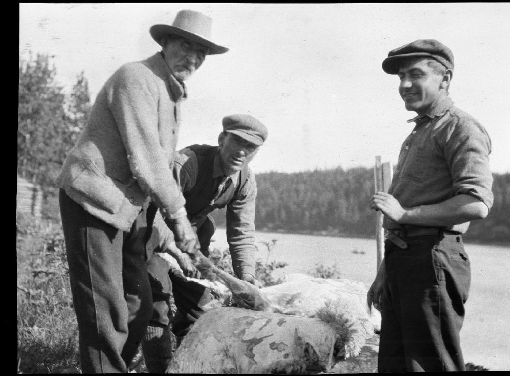 Guides au Club de pêche de Moisie, 1916, Archives nationales à Sept-Îles, Fonds Mitchell Campbell, (09N,P41,S3,P17), Campbell, Mitchell, gérant Club de pêche Moisie, époque 1936-1980.