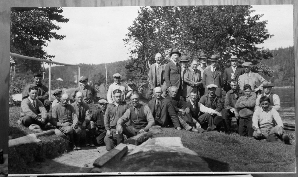 Pêcheurs et guides au Club de pêche de Moisie, Vers 1929, Archives nationales à Sept-Îles, Fonds Mitchell Campbell, (09N,P41,S3,P7), Campbell, Mitchell, gérant Club de pêche Moisie, époque 1936-1980.