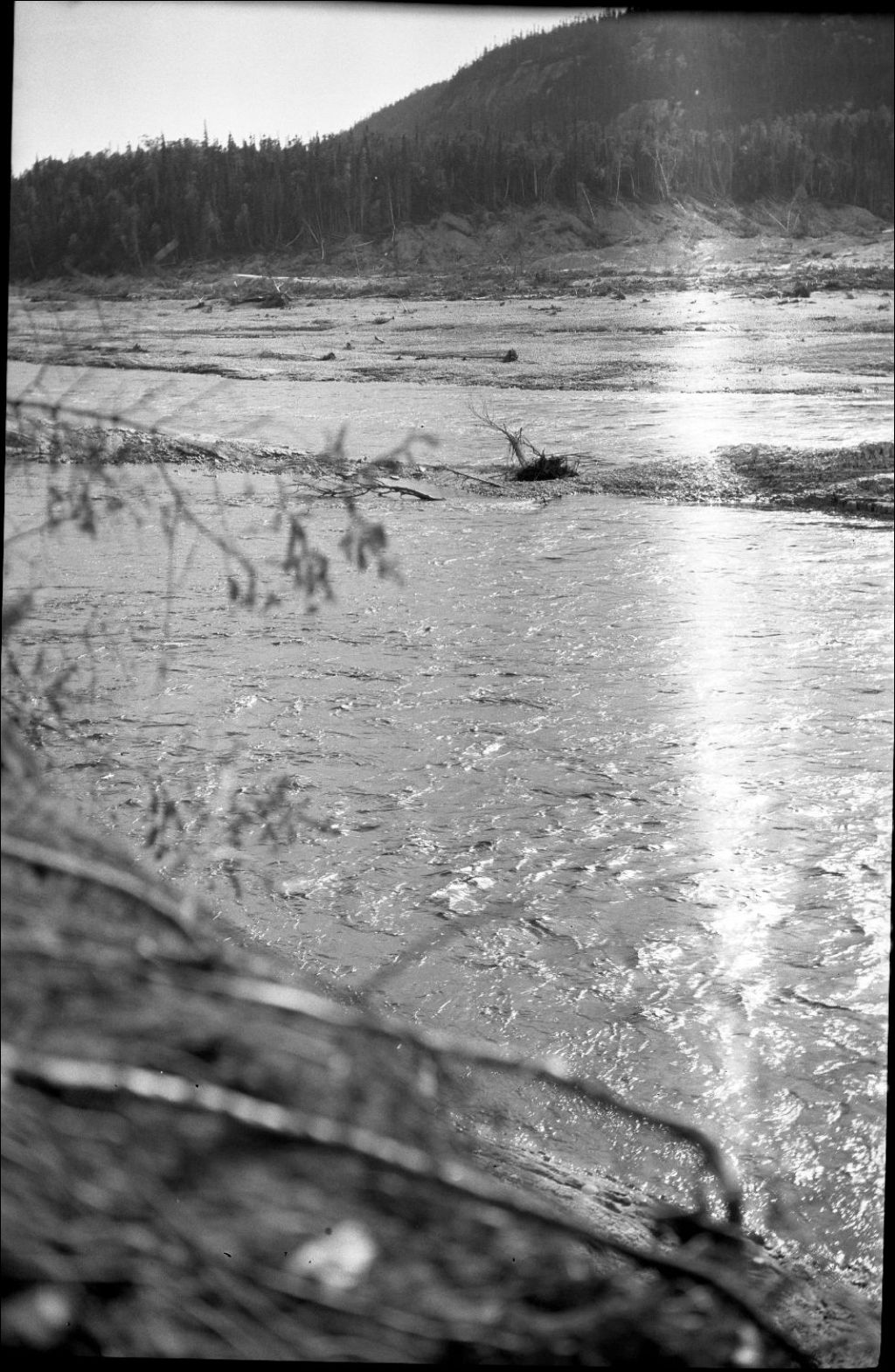 Inondation à la rivière Moisie, Vers 1919, Archives nationales à Sept-Îles, Fonds Mitchell Campbell, (09N,P41,S6,P16), Campbell, Mitchell, gérant Club de pêche Moisie, époque 1936-1980.