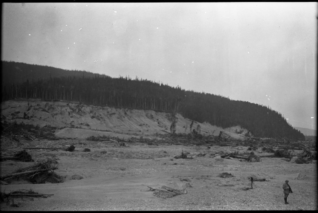Glissement de terrain à Moisie, 1918, Archives nationales à Sept-Îles, Fonds Mitchell Campbell, (09N,P41,S9,D3,P14), Campbell, Mitchell, gérant Club de pêche Moisie, époque 1936-1980.