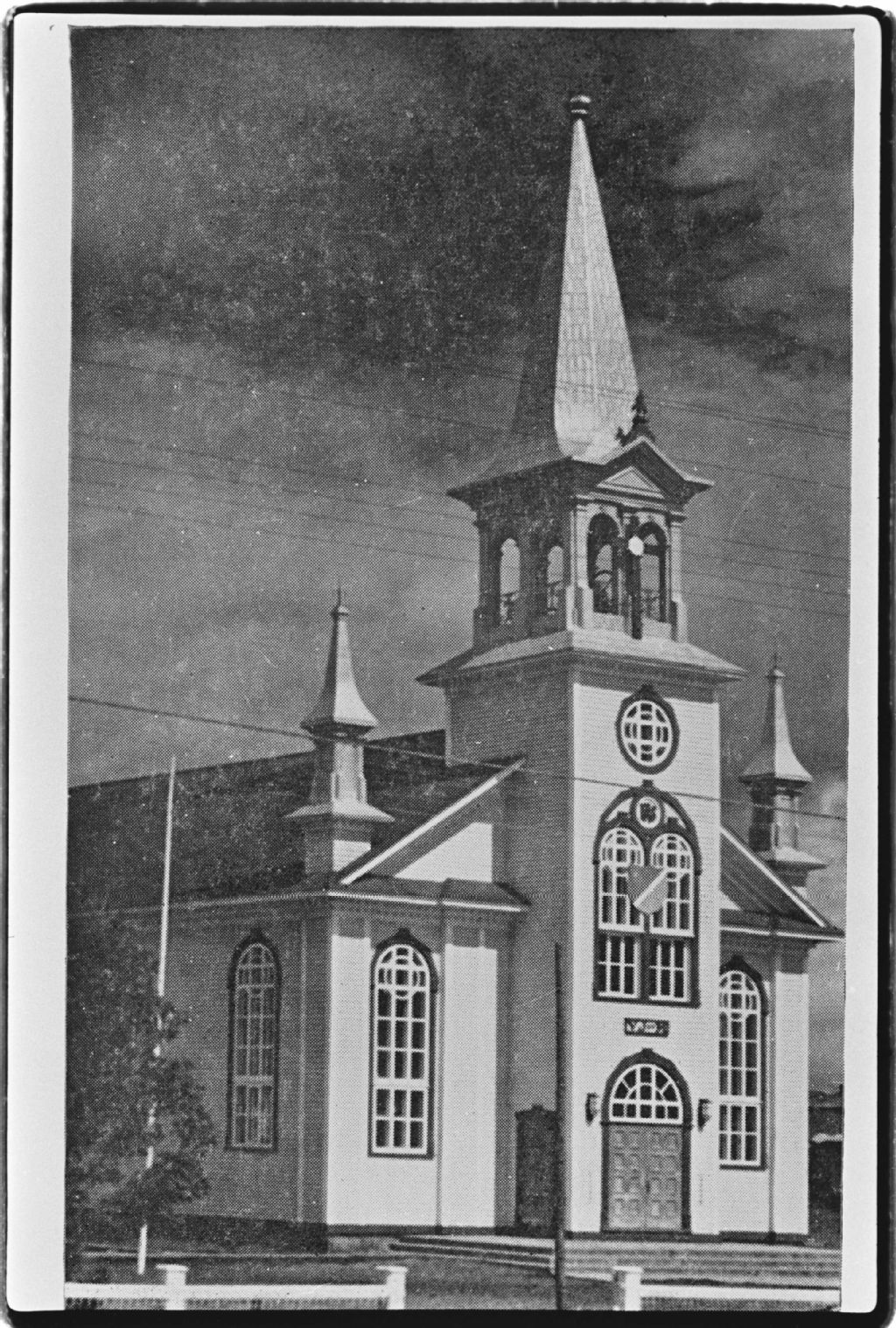 Église Saint-Joseph de Sept-Îles, Négatif reproduit en 1984 (original créé vers 1950), Archives nationales à Sept-Îles, Collection Société historique du Golfe, (09N,P6,S3,D4,P105), Société historique du Golfe.