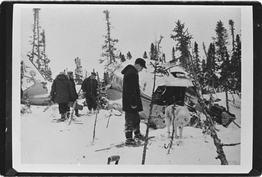Accident d'avion, Négatif reproduit en 1984 (original créé vers le 17 janvier 1956, Archives nationales à Sept-Îles, Collection Société historique du Golfe, (09N,P6,S3,D4,P187), Société historique du Golfe.