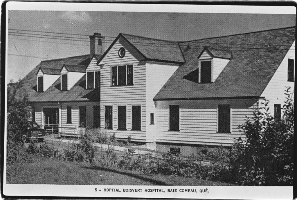 Hôpital Boisvert de Baie-Comeau, Négatif reproduit en 1984 (original créé vers 1940), Archives nationales à Sept-Îles, Collection Société historique du Golfe, (09N,P6,S3,D4,P272), Société historique du Golfe.