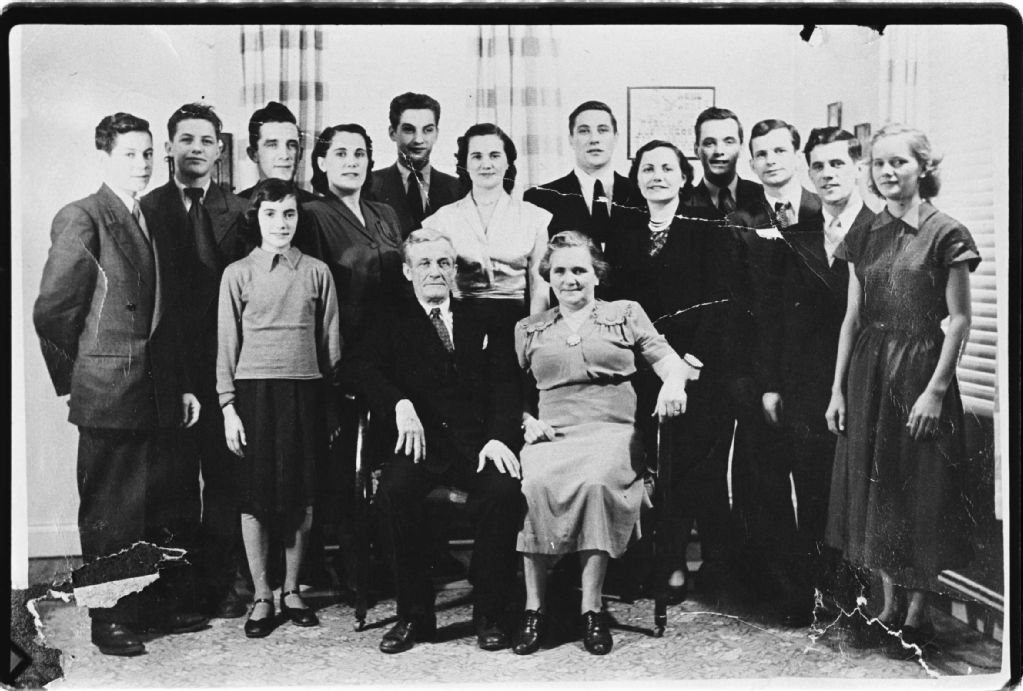 Johnny Ferguson, son épouse, Anésie Bourque, et les enfants : Roger, Georges, Armand, Marguerite, Walter, Édith, Raymond, Winnifred, Roland, Frank, Gaston, Mary et Kathleen.