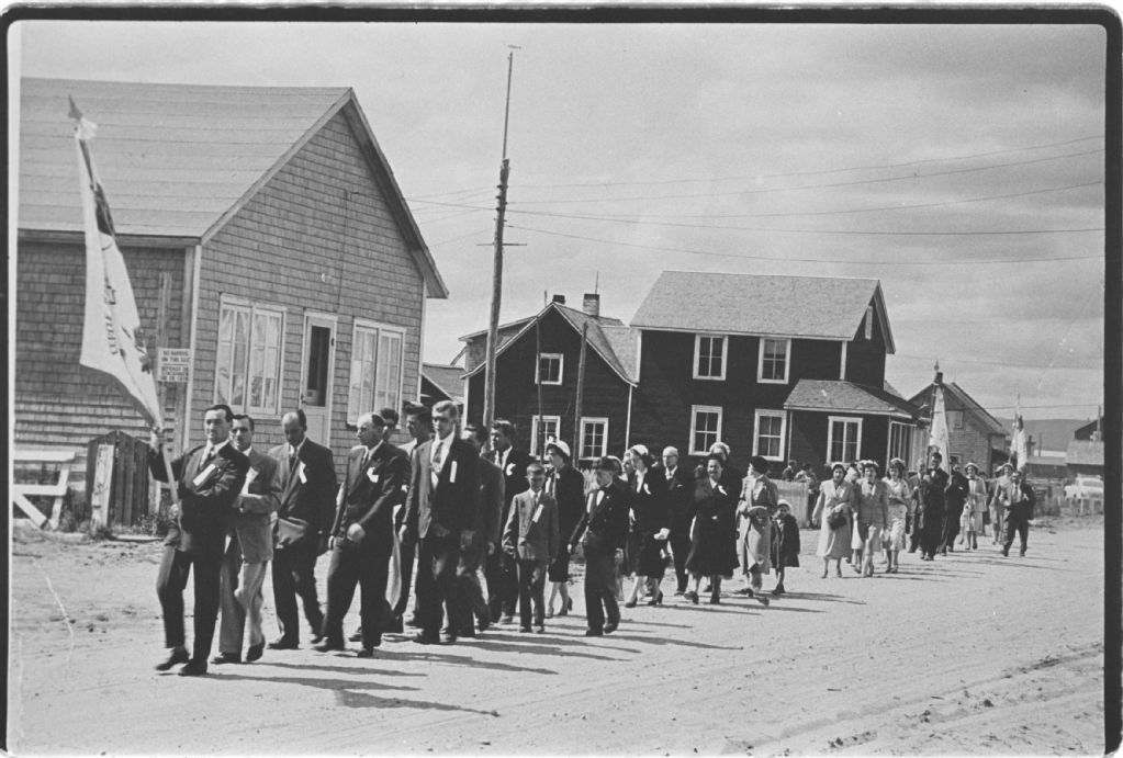 Marche du Cercle Lacordaire de Sept-Îles, Négatif reproduit en 1984 (original créé vers 1950), Archives nationales à Sept-Îles, Collection Société historique du Golfe, (09N,P6,S3,D4,P543), Société historique du Golfe.
