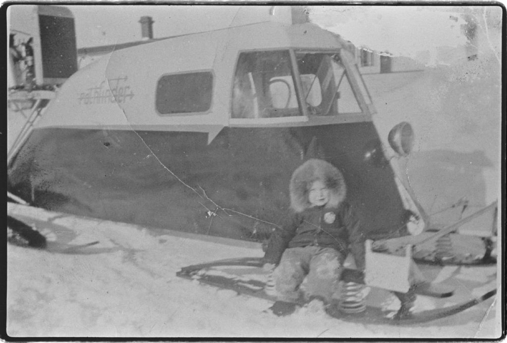 Jacques Beaulieu, fils du docteur Gérard Beaulieu, devant une autoneige
