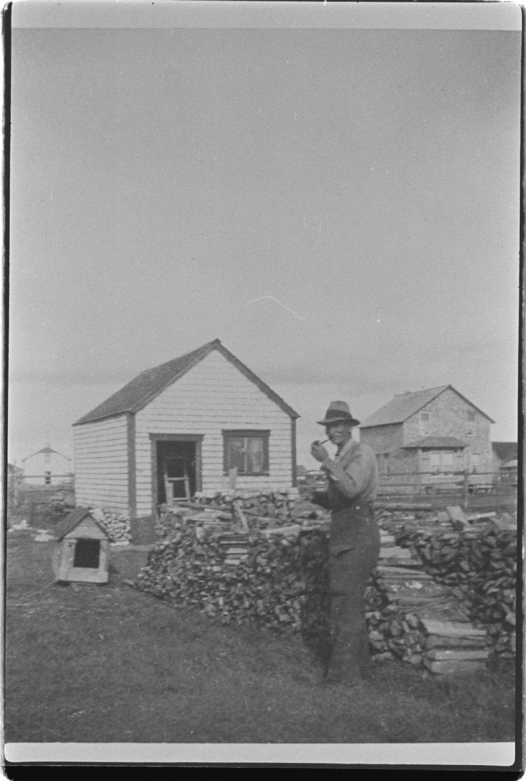 Frédéric Salsman à Sept-Îles devant son hangar à bois