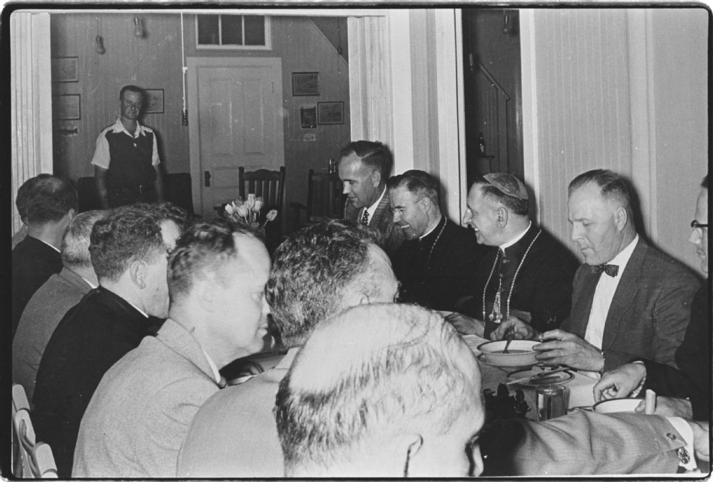 Souper chez Donald Gallienne, Négatif reproduit en 1984 (original créé vers 1950), Archives nationales à Sept-Îles, Collection Société historique du Golfe, (09N,P6,S3,D4,P892), Société historique du Golfe.