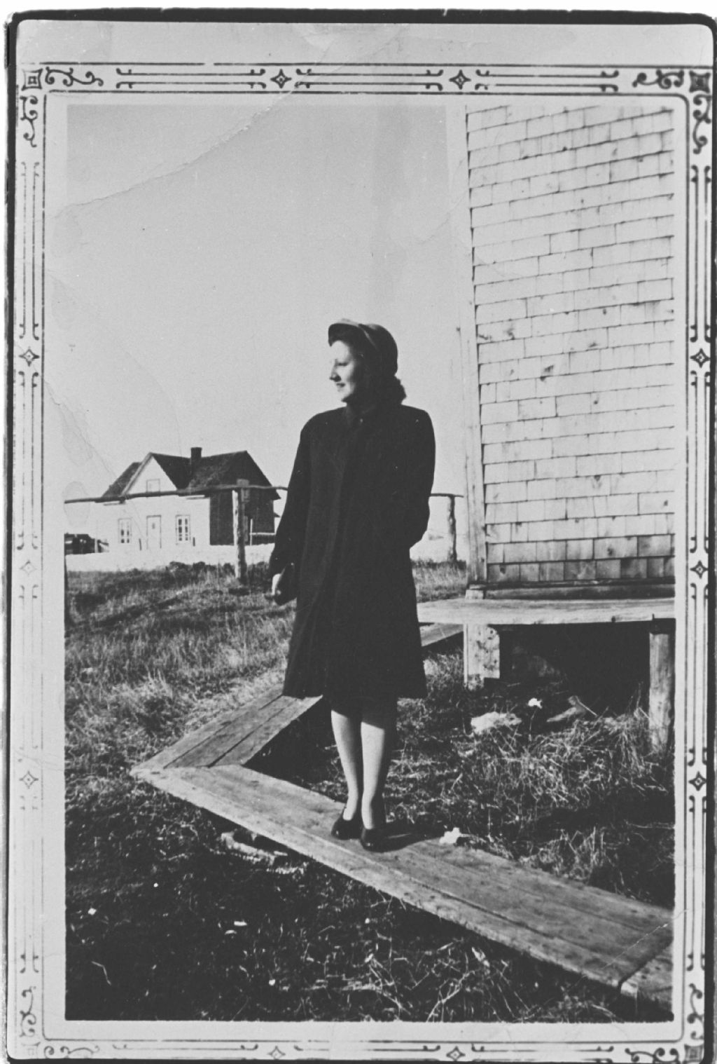 Blanche Bourgeois près de la maison de Roméo Boudreau