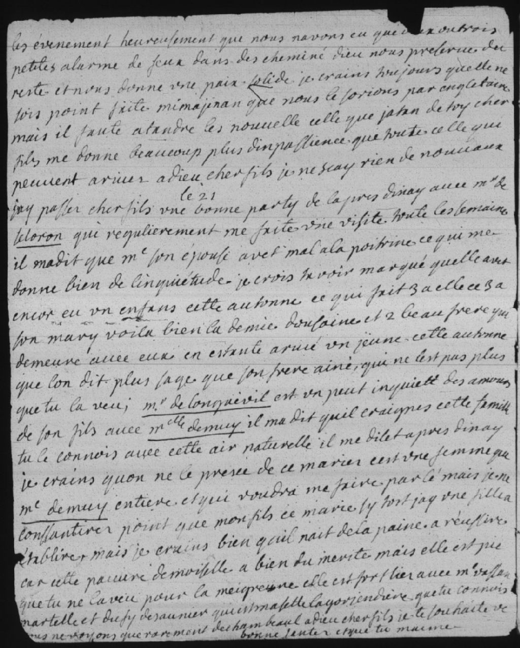 Journal de Madame Bégon, 21 décembre 1748, Archives nationales à Québec, Fonds Famille Bégon, (03Q,P2,P39).
