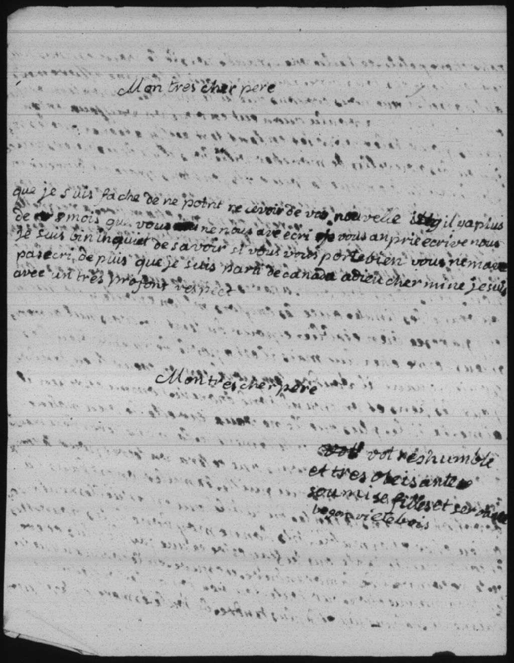 Marie-Catherine (Marie-Catherine de Villebois de La Rouvillière) s'inquiète de ne pas avoir de nouvelles de son père (Honoré Michel de Villebois de La Rouvillière) depuis son départ du Canada