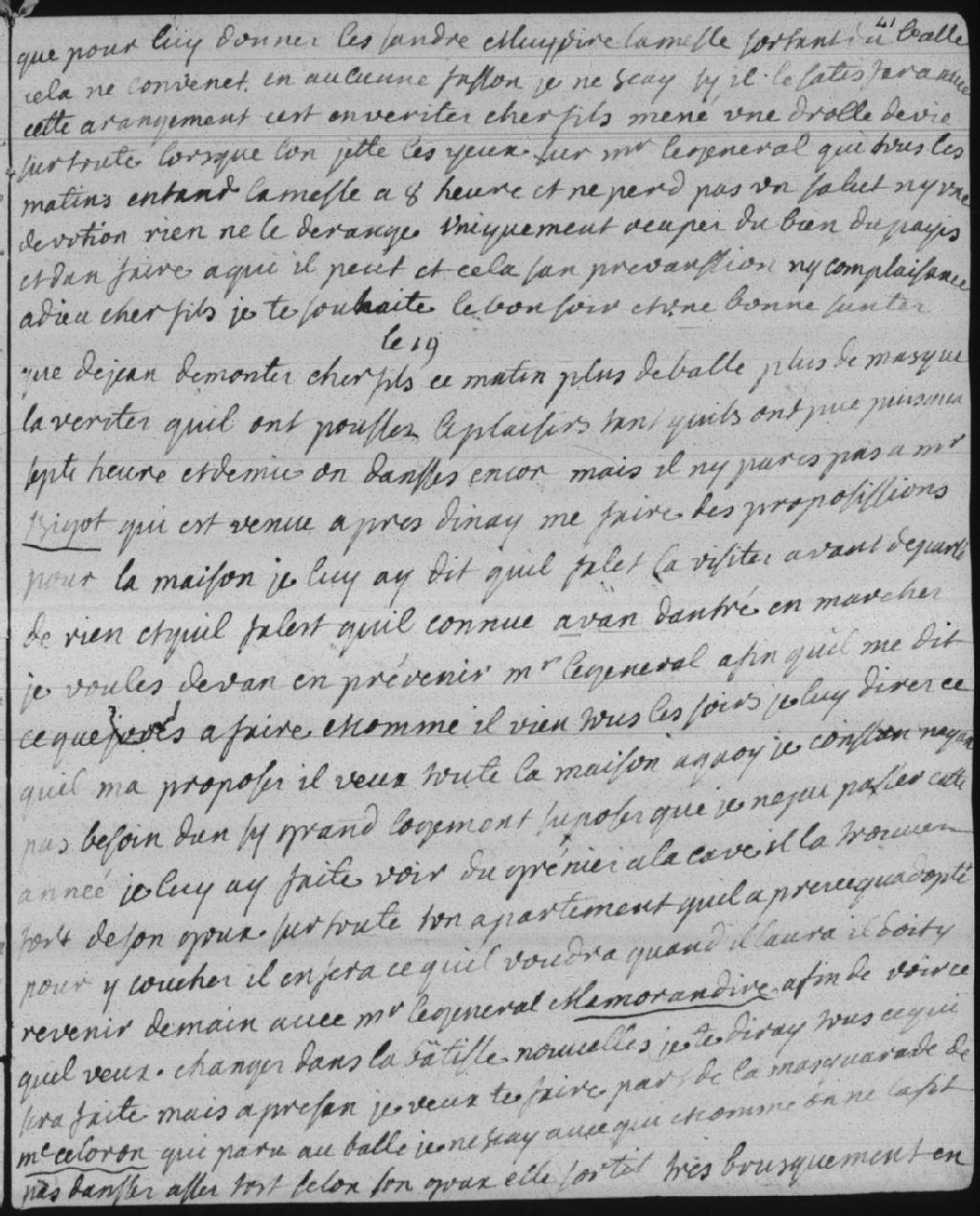 Journal de Madame Bégon, 19 février 1749, Archives nationales à Québec, Fonds Famille Bégon, (03Q,P2,P98).