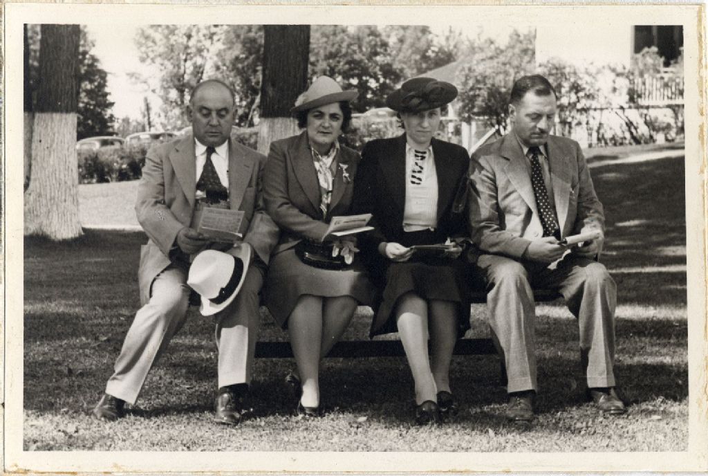 À partir de la gauche : T.-D. Bouchard, Cécile-Éna Bouchard, Mme Hervé Gagnon et Dr Hervé Gagnon