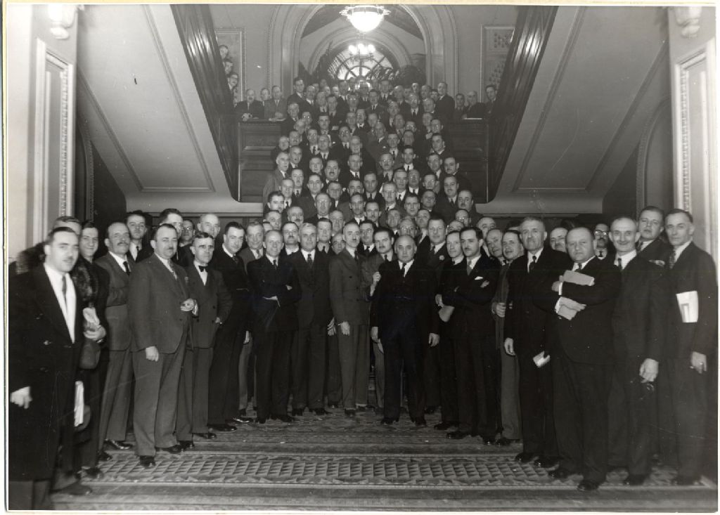 [T.-D. Bouchard et un groupe d'hommes, Adhémar Raynault; Adélard Godbout et Wilfrid Hamel], [1930?], Archives nationales à Québec, Fonds Télesphore-Damien Bouchard, (03Q,P10,S1,P149), Photographe non identifié.