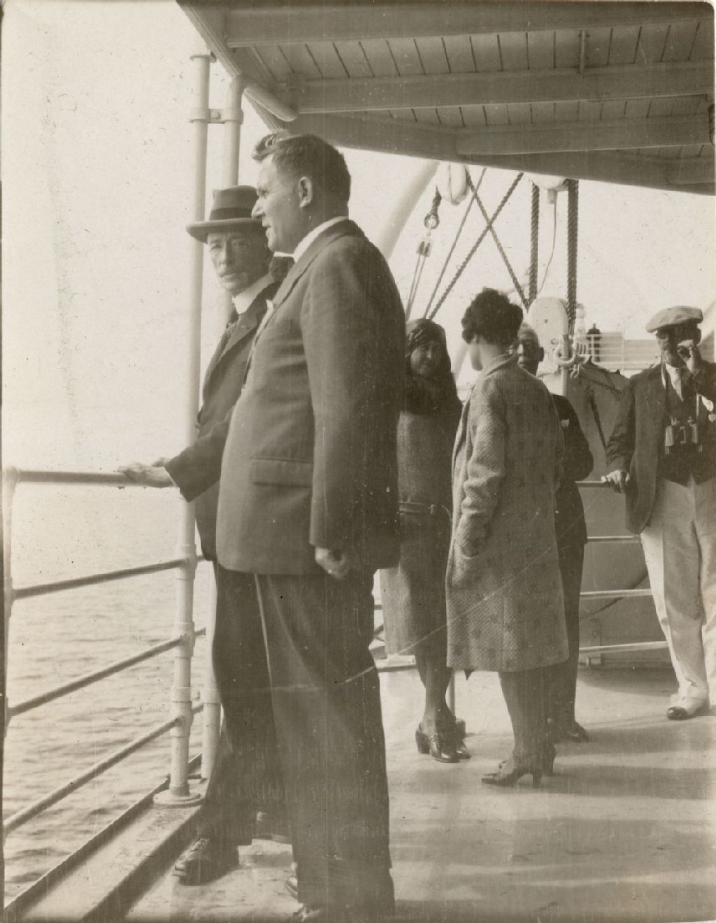 Hon. Louis-Alexandre Taschereau sur un bateau avec d'autres personnes non-identifées, [1930?], Archives nationales à Québec, Fonds Télesphore-Damien Bouchard, (03Q,P10,S1,P214), Photographe non identifié.