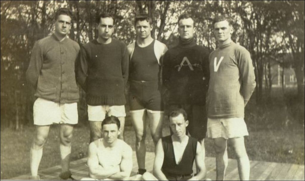 Lionel Audet-Lapointe, Eugène Brosseau et d'autres recrues lors d'un entraînement à la boxe, [Vers juin 1918], Archives nationales à Montréal, Collection Lionel Audet-Lapointe, (06M,P1,S6,P10), Lionel Audet-Lapointe.