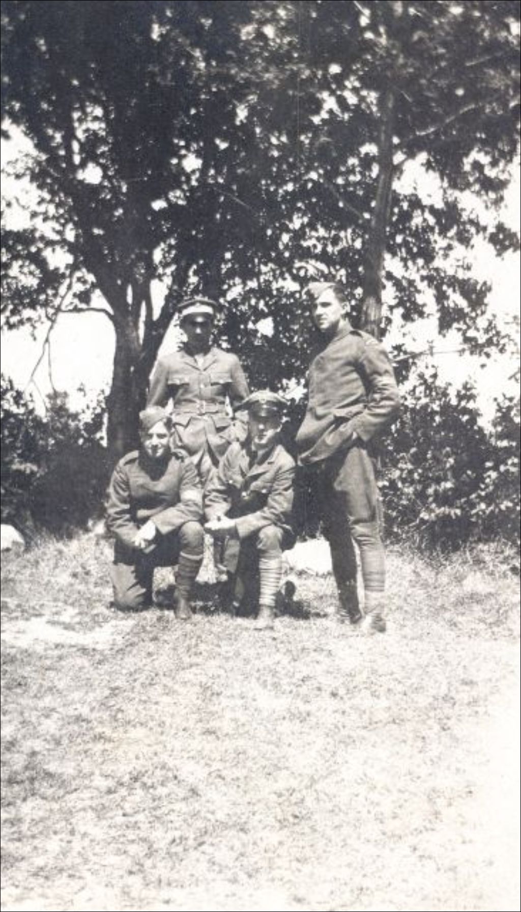 Lionel Audet-Lapointe et d'autres aviateurs en uniforme au camp de Long Branch, [Vers juin 1918], Archives nationales à Montréal, Collection Lionel Audet-Lapointe, (06M,P1,S6,P28), Lionel Audet-Lapointe.