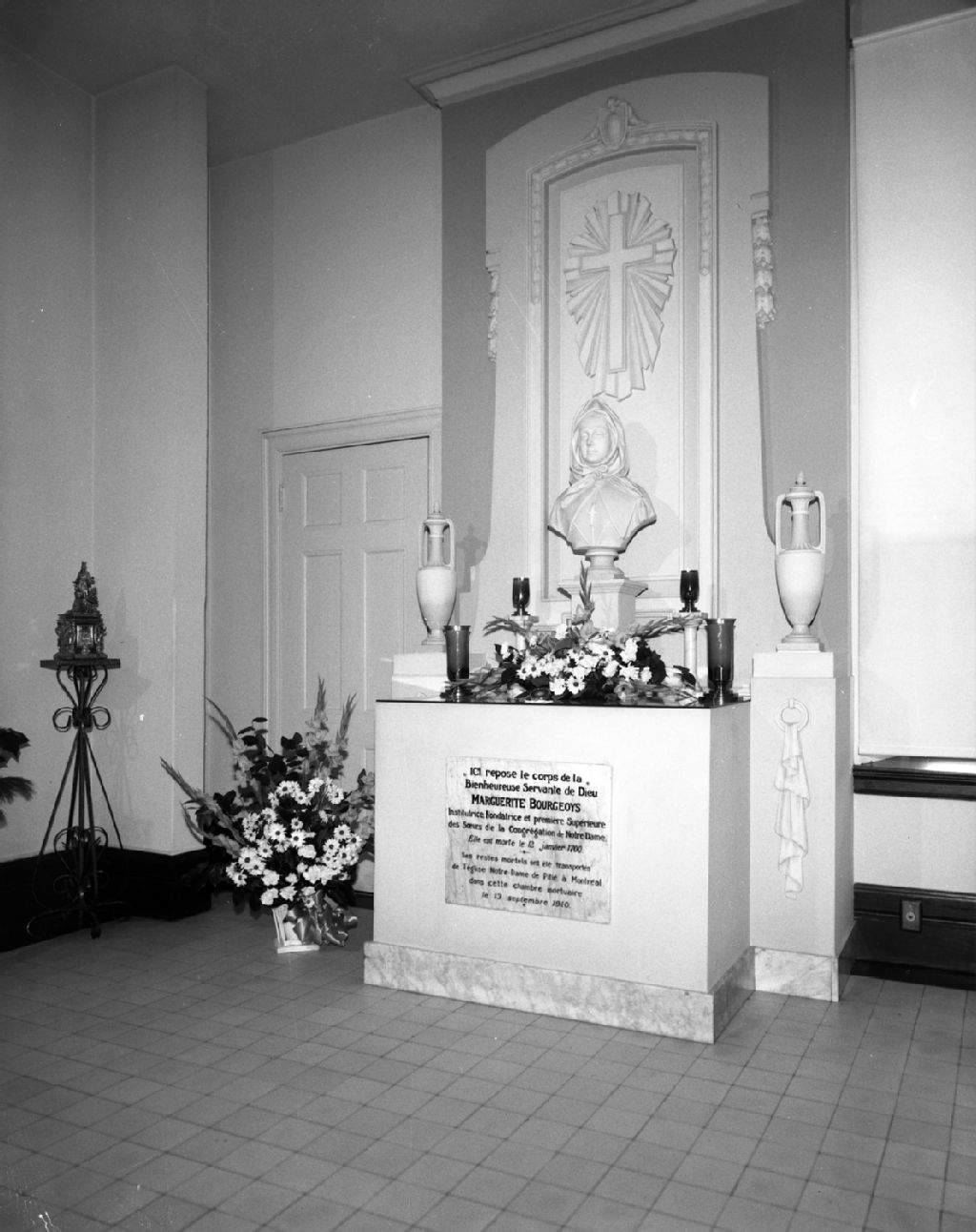 Le tombeau de Marguerite Bourgeoys à la maison-mère de la Congrégation de Notre-Dame à Montréal, 11 janvier 1975, Archives nationales à Montréal, Fonds Armour Landry, (06M,P97,S1,D12554-12554), Armour Landry.