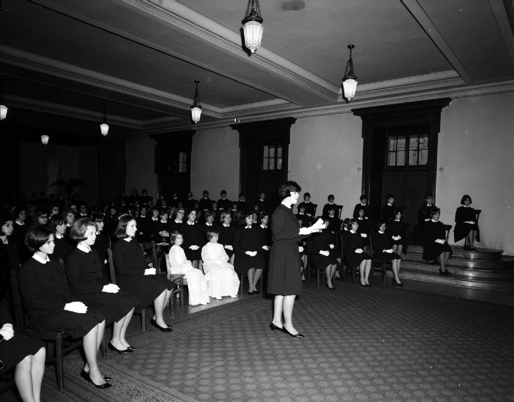 - Nous pouvons voir la cérémonie (repas et discours) organisée pour la visite de Madame Kirkland-Casgrain au pensionnat pour jeunes filles Villa-Maria, fondé en 1854 et situé au 4245 boulevard Décarie