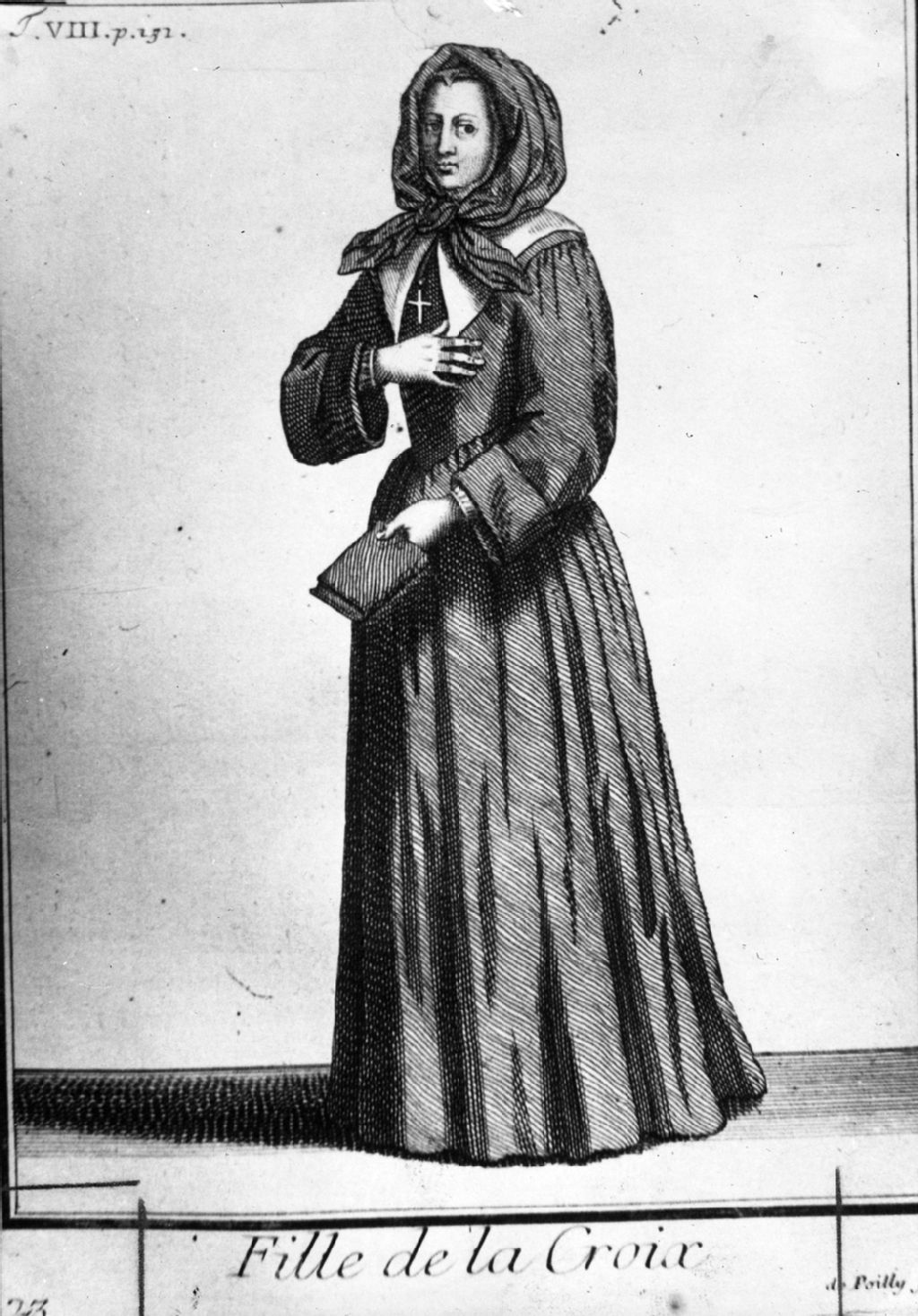 Il s'agit du portrait d'une religieuse des Filles de la Croix qui dirigeaient les écoles dans les campagnes et les hameaux en France. Cette photographie fait partie d'une thématique sur l'évolution du costume