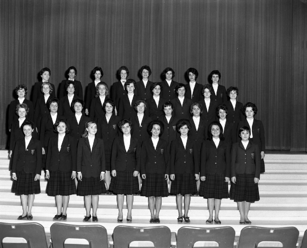 Les élèves du collège Marguerite Bourgeoys de la Congrégation de Notre-Dame à Montréal, [Vers 1975], Archives nationales à Montréal, Fonds Armour Landry, (06M,P97,S1,D12733-12733), Armour Landry.