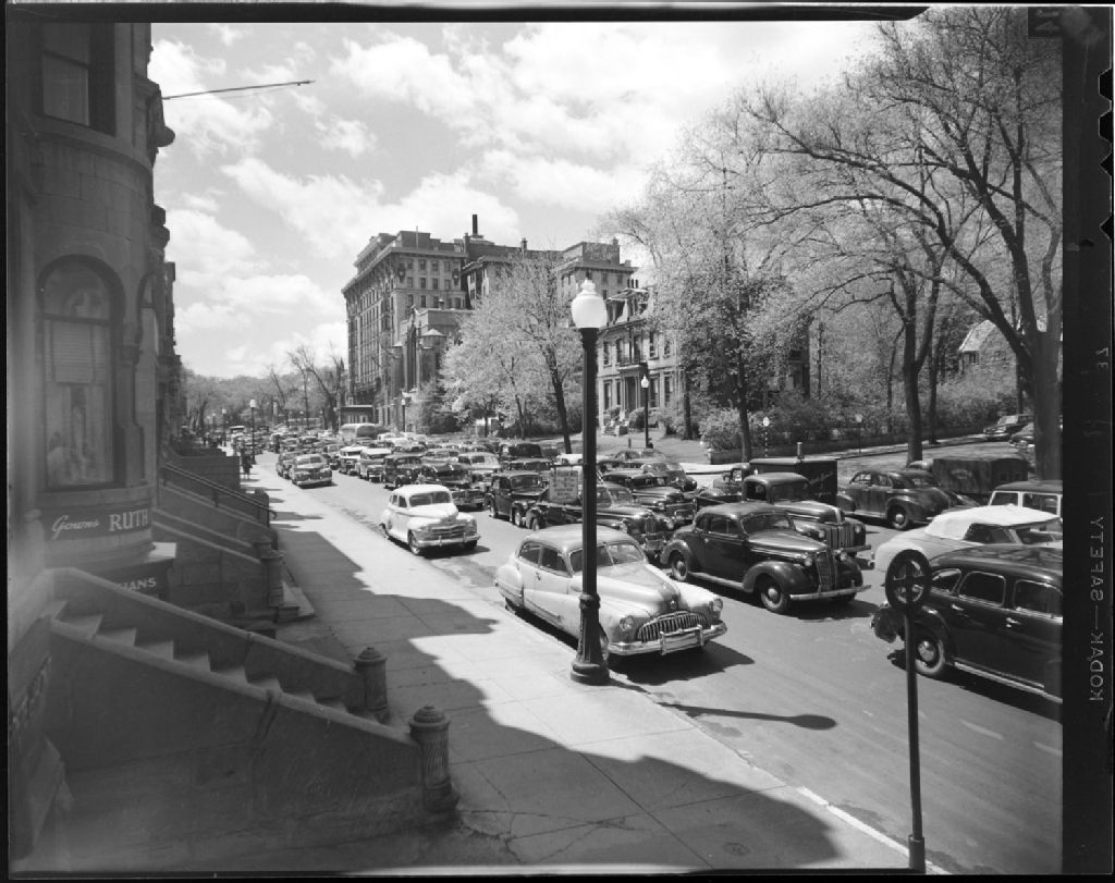La rue Sherbrooke Ouest au coin de la rue Redpath à Montréal, 1950, Archives nationales à Montréal, Fonds Armour Landry, (06M,P97,S1,D14162-14162), Armour Landry.