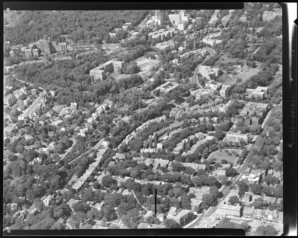 Vue aérienne des rues Côte-des-Neiges, Atwater et Sherbrooke à Montréal