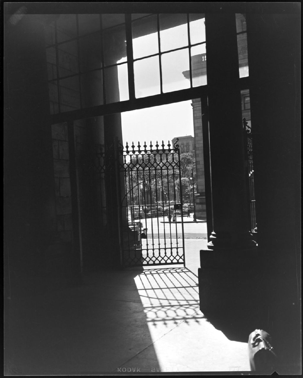 Un portail en fer forgé dans un lieu non-identifié sur l'île de Montréal, Vers 1950, Archives nationales à Montréal, Fonds Armour Landry, (06M,P97,S1,D14205-14206), Armour Landry.