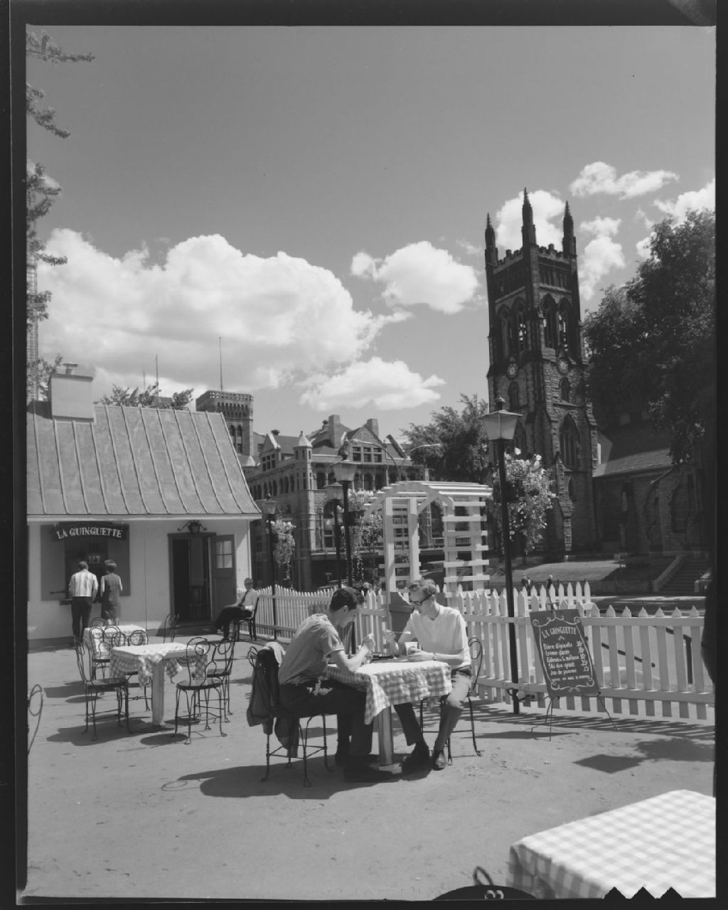 La terrasse de "La guinguette", au square Dominion (devenu Dorchester) à Montréal, Juillet 1965, Archives nationales à Montréal, Fonds Armour Landry, (06M,P97,S1,D14227-14227), Armour Landry.