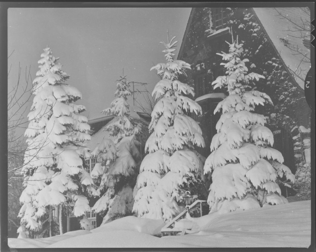 Vue d'arbres chargés de neige, dans le quartier de Westmount à Montréal, pour "Canada Wide"