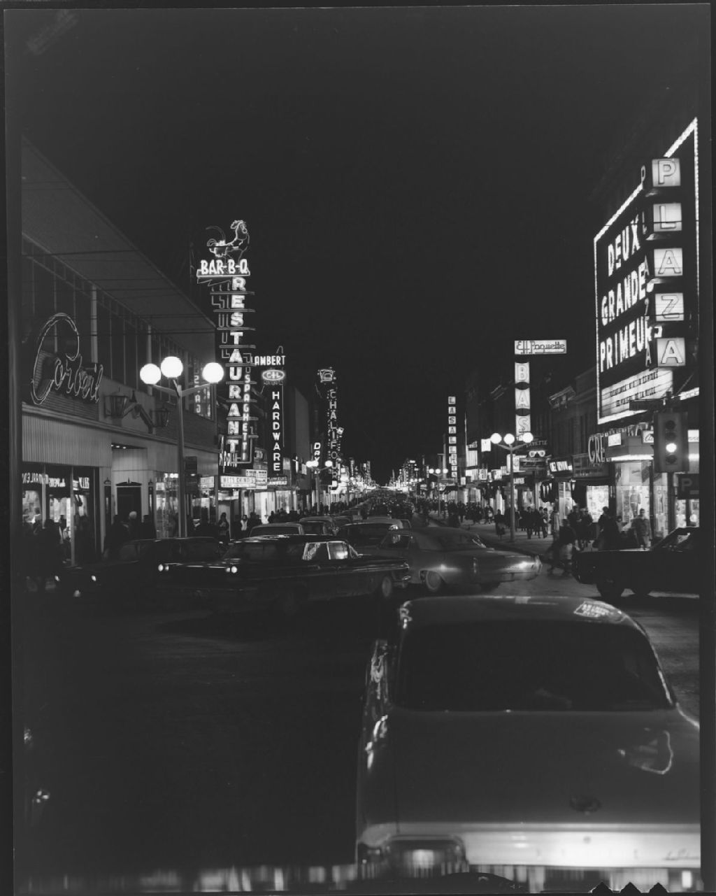 Vue de la rue Saint-Hubert au coin Beaubien à Montréal, Janvier 1965, Archives nationales à Montréal, Fonds Armour Landry, (06M,P97,S1,D14247-14247), Armour Landry.
