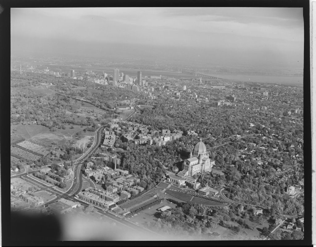 Vue aérienne de l'Oratoire Saint-Joseph à Montréal, Octobre 1962, Archives nationales à Montréal, Fonds Armour Landry, (06M,P97,S1,D14258-14258), Armour Landry.