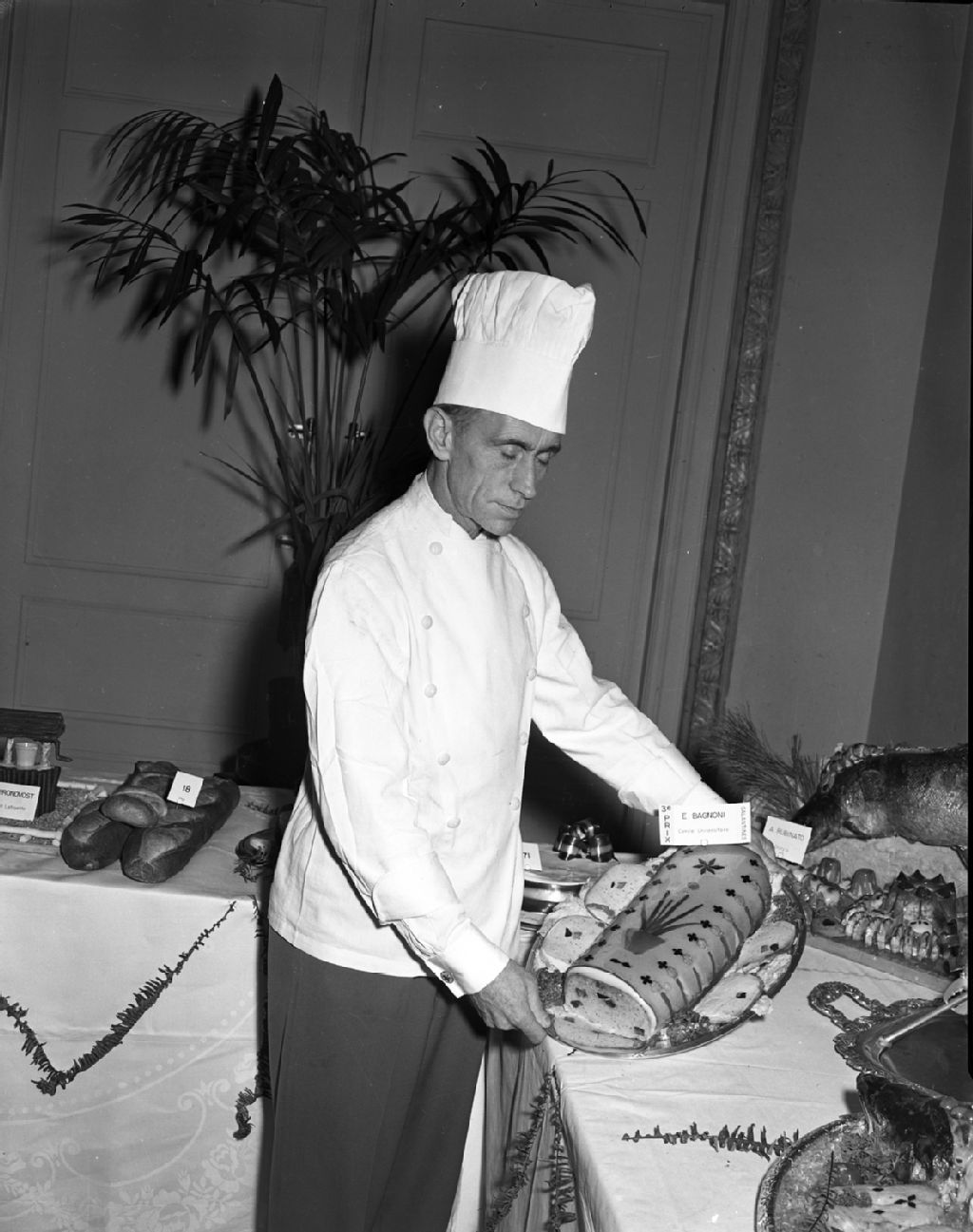 Les expositions au Salon de l'art culinaire, organisé par le ministère du Commerce et de l'Industrie du Québec, à Montréal (probablement au Palais du commerce), 1951, Archives nationales à Montréal, Fonds Armour Landry, (06M,P97,S1,D14350-14378), Armour Landry.