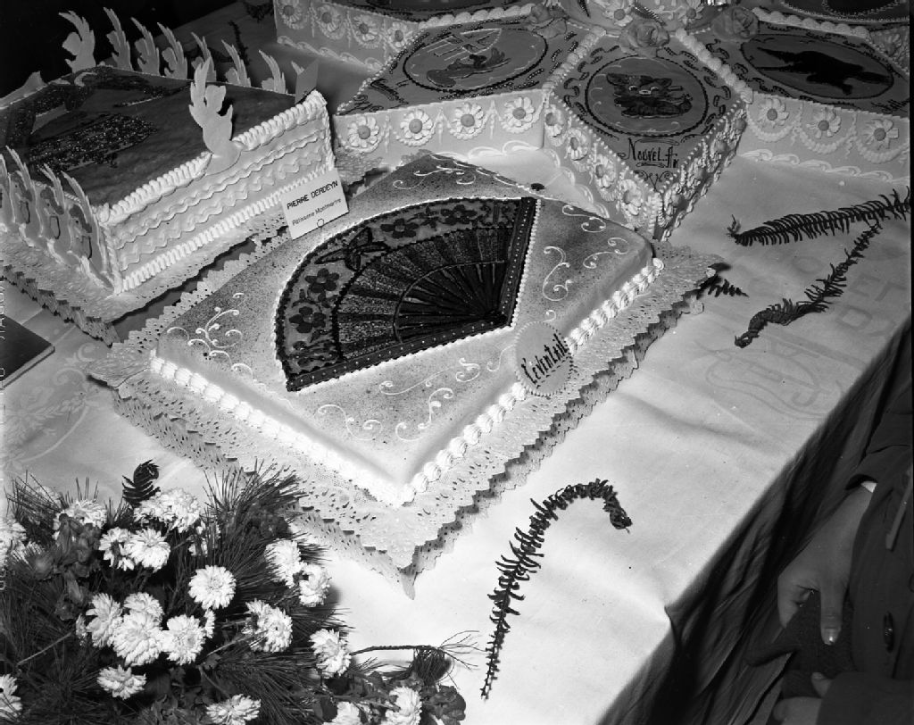 L'oeuvre de M.Pierre Derdeyn, de la "Pâtisserie Montmartre", pour le Salon de l'art culinaire, organisé par le ministère du Commerce et de l'Industrie du Québec, à Montréal (probablement au Palais du commerce)