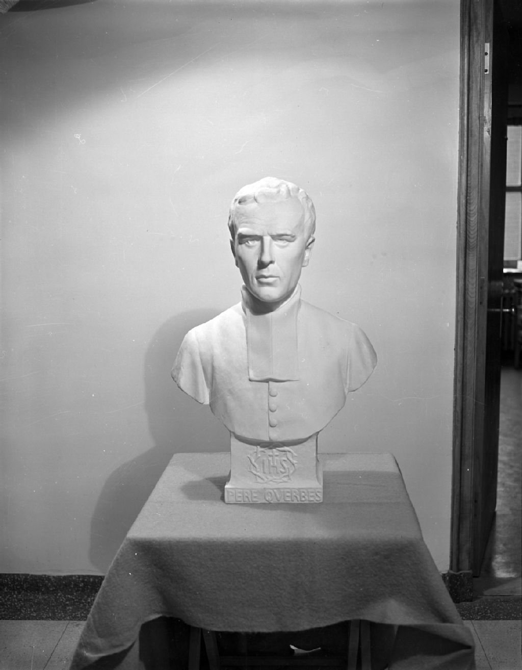Le buste du père Louis-Marie Querbes, fondateur de la congrégation religieuse des Clercs de Saint-Viateur, Vers 1960, Archives nationales à Montréal, Fonds Armour Landry, (06M,P97,S1,D14712-14713), Armour Landry.