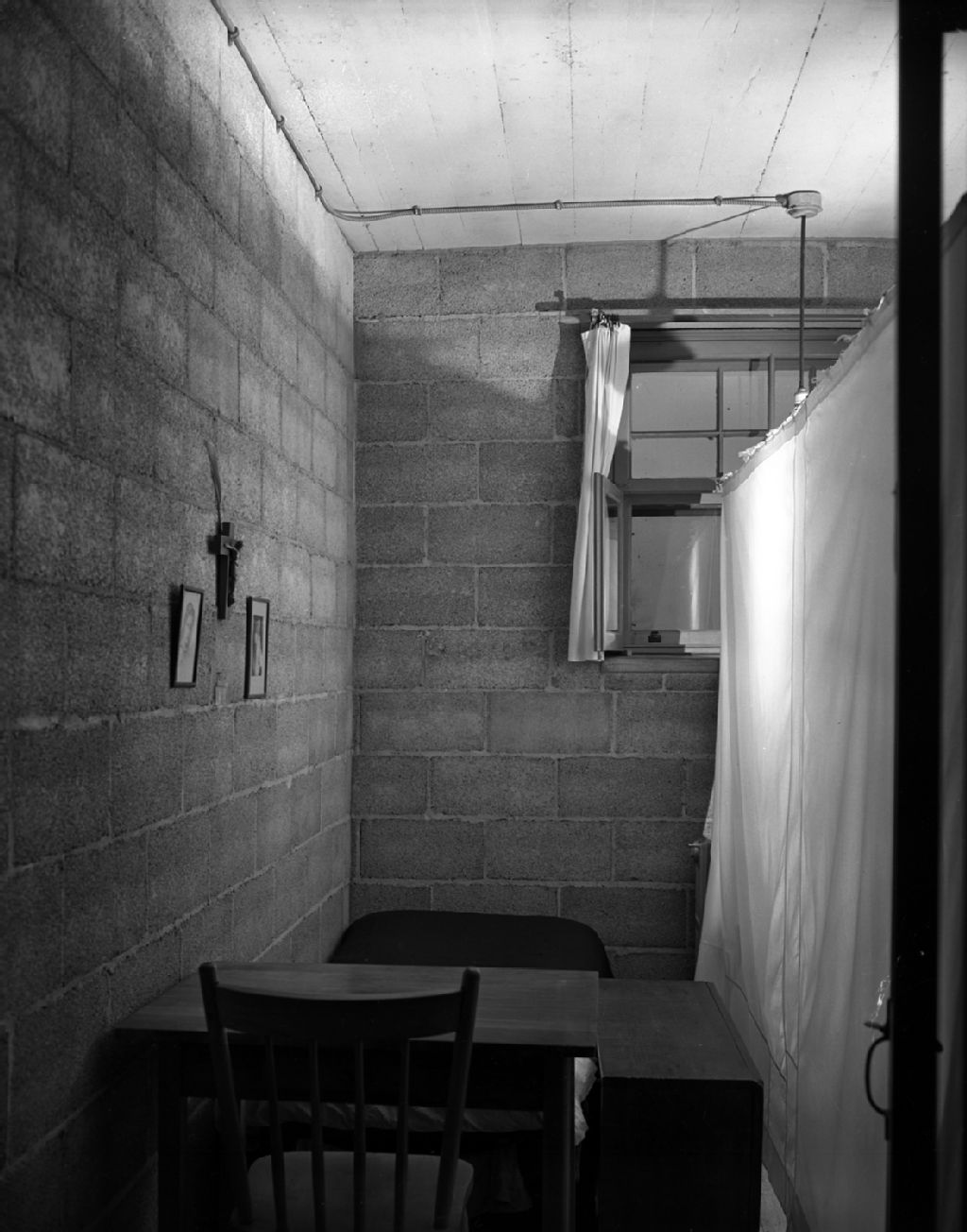 Vue du dortoir des moniales bénédictines du monastère de Sainte-Marie des Deux-Montagnes à Saint-Eustache, Vers 1953, Archives nationales à Montréal, Fonds Armour Landry, (06M,P97,S1,D14733-14733), Armour Landry.